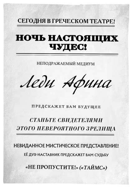 А они мне помогали, торопливо добавила я. И по горячим следам я открыла сыскное бюро. Клиент попросил меня расследовать таинственное дело, в котором упоминалась леди Афина. Мы надеялись посмотреть, что происходит, и, может, даже попасть на представление, с надеждой добавила я.