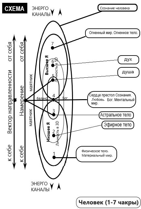 Наше тело запоминает любые взаимодействия с людьми, вещами, атмосферой на физическом и энергетическом уровне. Все это накапливается в памяти тела. Если накоплений будет больше определенного уровня, то это приведет к состоянию напряжения (замешательству). Через восприятие органами зрения, слуха, обоняния, осязания мы формируем личностные программы от Памяти тела. А от Памяти с умозаключениями через опыт прожитых самых разных жизненных обстоятельств, принесших радость, горе, боль, печаль, накладываем Вето или печать, классно, плохо, хорошо, больно, кайф. Физическое тело реагирует в этой связи бурей гормонов (гормоны радости, страха). На энергетически-эмоциональном плане, в астральном теле включаем переживание от обиды, гнева, страха или желания: хочу двигаться с намерением с вектором направленности на себя, с результатом возвеличивания своей личности (трон, корона). Или с намерением и вектором направленности от себя, через осознание своего несовершенства, через трансформацию, воспитание своей личности. Зов Души (программа), Интуиция, раскрытие Сознания помогают двигаться, действовать в этом направлении. Таким образом, мы сами формируем, воспитываем свою личность в искаженном восприятии истины, через розовые очки, через призму эго, погружаясь в поле, в сферу 3D со своими эгрегорами и закономерностями, со своими правилами игры. Сформировавшийся Интеллект помогает в этом поле, на этом пути действовать успешно, избегать разочарования, неудачи. Удачными, просчитываемыми способами завоевывать территории для действий, с меньшими потерями овладевать благами, не наступая на старые грабли, добиваться целей с намерением поля 3D в нижней триаде (мораль, этика) смотреть в схеме. Интеллект также может успешно работать в расширении, раскрытии сознания в 5D. В формировании логических цепочек в осознание своей личности, а также в работе и в проявлениях космических, божественных законов, в пробуждении Души и в раскрытии верхней триады (схема). А в дальнейшем и в слиянии этих триад через сердце, через Бога, через баланс и равновесие в аспекте Радости, Свободы, в гармонии трансформированных центров, полей человека в Свете Сознания в новой частоте, в новой вибрации.