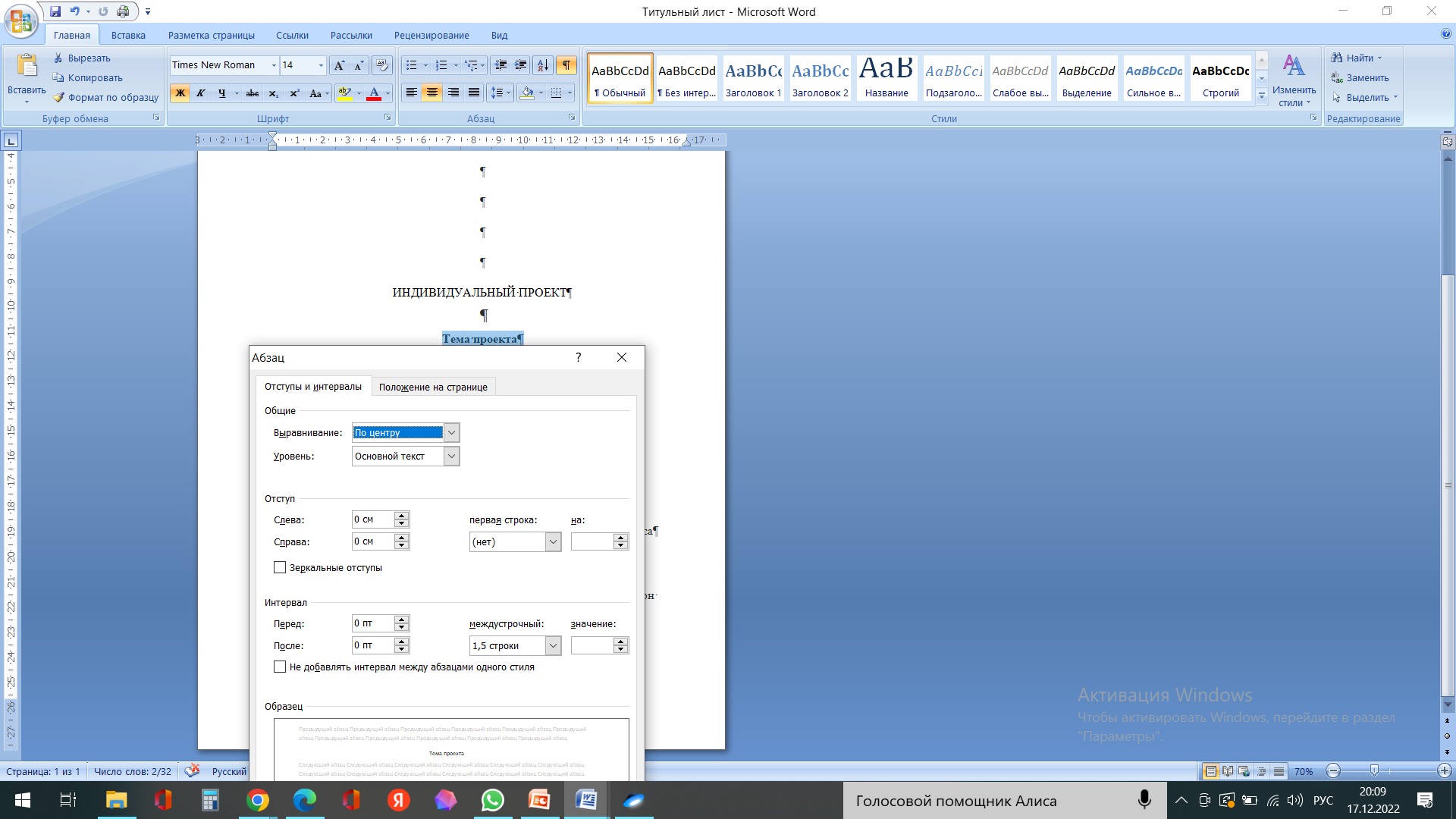 1) Размер шрифта: 16 pt, заглавные буквы.