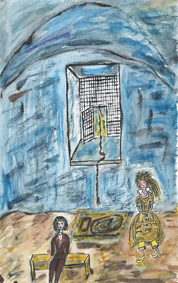 Я честно сказала, что мне любопытно и хочется с ним познакомиться. Тогда он поднял голову и ничего мне не сказал. Второй раз я его видела, когда его посадили в нижнюю комнату, где обычно держат провинившихся людей. Я спустилась к нему через окно и подошла к нему. А он начал смеяться надо мной