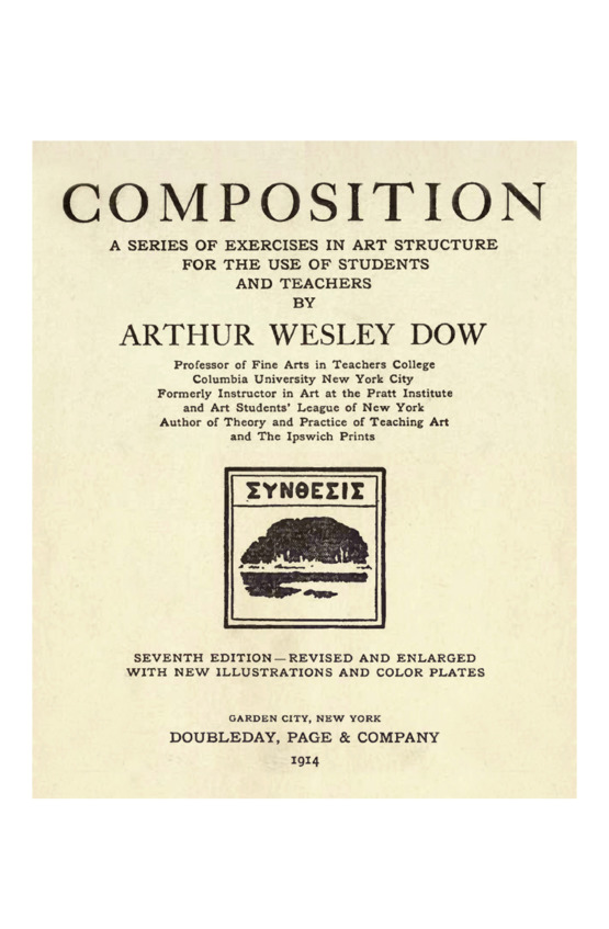 Европейское и американское искусство в конце 19-го века было под сильным влиянием японской художественной культуры. Это влияние позже было названо японизмом. Эстетика, темы, мотивы, техника, колористика японского искусства отразились в творчестве импрессионистов и постимпрессионистов. Японизм оказал сильное влияние на искусство периода модерна и стиля ар-деко. Но на русской почве восприятие этого культурного импульса было неоднозначным, например, импрессионизм в России пренебрежительно называли французской болезнью. Отношение к проявлениям японизма часто было скептическим. Видимо, по этой причине труды Артура Уэсли Доу (18571922 г.г.), который стоял у истоков японизма в Америке, не нашли заинтересованных читателей и, соответственно, переводчиков. Мне видится очень важным восполнить пробел в русскоязычной литературе об искусстве переводом основополагающего труда Доу. Перевод выполнен по девятому изданию 1914 года Composition. A series of exercises in art structure for the use of students and teachers by Arthur Wesley Dow; Doubleday, Page & Company.