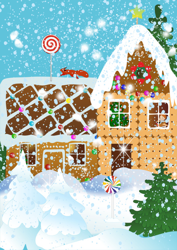 Зима. С неба падает ласковый пушистый снег, похожий на нежные кусочки сахарной ваты. Деревья и дома, как будто, обсыпаны сахарной пудрой, которую разносит легкий легкий ветерок и кружит по улицам