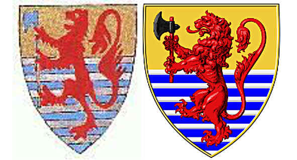 Такое же поле, но во второй части щита и на гербе короля Исландии (le Roi dillande), находящегося среди других королевских гербов во французском Гербовнике Винберга, изданном в 12651285 гг. Под королем Исландии, очевидно, подразумевался король Норвегии, так как герб этот также очень похож на норвежский, но в отличие от последнего, обратных цветов: красный лев в двучастном золотом и 12-кратно пересеченном голубым и серебром.