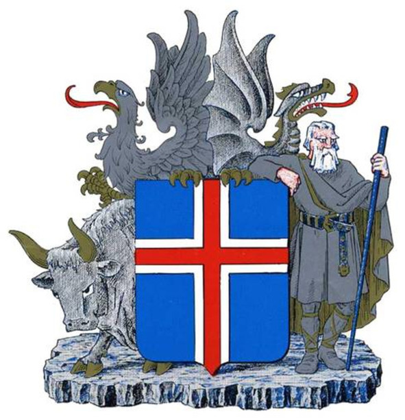 Щитодержатели придают исландскому гербу особый колорит. Дракон, гриф, бык и великан это персонажи произведения «Хеймскрингла» («Круг земной») известного исландского скальда, историка и политика Снорри Стурлисона (11791241), созданного около 1230 г. и являющегося бесценным произведением исландской литературы.