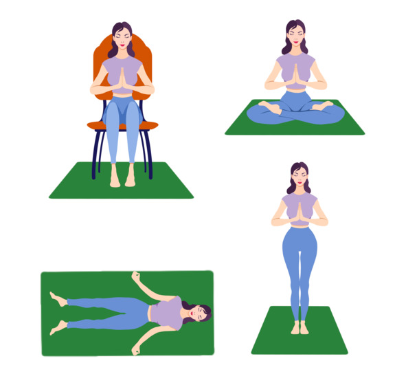 Самое распространённое положение это сидя на стуле, так как обычно мы на рабочем месте сидим за компьютером. В таком положении можно легко и быстро переключиться в медитацию, никуда не нужно идти и что-то специально готовить.