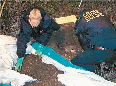 Следователи просеивают почву в поисках улик, оставленных нападавшим. Часто образцы почвы также берутся и вокруг места преступления для сравнения