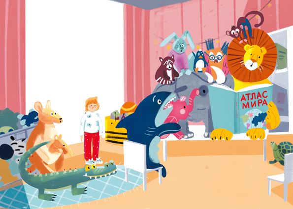 Однажды утром Лия проснулась от большого переполоха. Все её игрушки собрались на столе, что-то друг другу показывали и о чём-то спорили. Дело чуть до драки не дошло. Девочка тихо подкралась к ним и видит: звери листают её любимую книгу. В книге много карт далёких стран и континентов, и называется она «Атлас мира». Звери увидели девочку, притихли, но только на минутку и давай наперебой задавать ей вопросы.