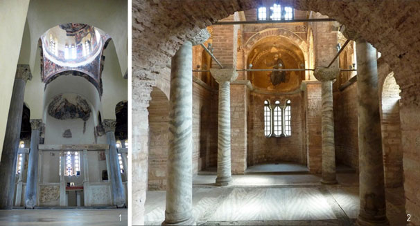 1. Церковь Святых Апостолов Солакиса или Агии Апостоли (греч. Ναός Αγίων Αποστόλων Σολάκη) (Афины). Интерьер. X в. 2. Церковь Богородицы Паммакаристы (Радующейся) в Стамбуле. XII(?) в.
