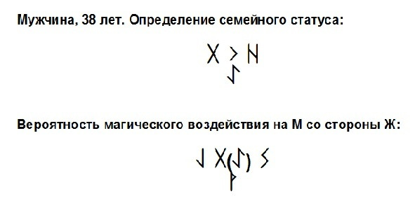Также здесь любопытна Феху, которая на итоге триплета может говорить не только о наличии семьи (при данных рунах), но и указывать на то, что мужчина крупный руководитель, крепко стоит на ногах.