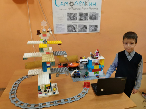 Внук занял первое место среди первоклассников города за проект Фабрика Деда Мороза из элементов конструктора LEGO.