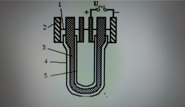 3. Твердый электролит-циркониевая керамика. 4. Внешний электрод. 5. Внутренний электрод