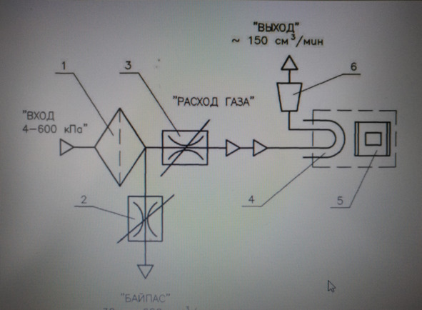 Описание сх.2: 1. Фильтр, 2. Регулятор байпасного сброса, 3. Регулятор расхода газа, 4. Циркониевый датчик, 5. Термостат, 6. Ротаметр, индикатор расхода газа.
