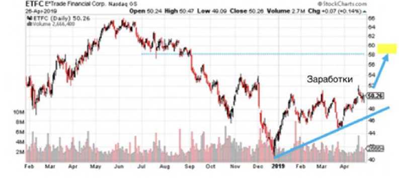 Торговая идея: ETFC $50,26 (E*Trade Financial) Покупка 19 июля колла с 55$ страйком за $0,94