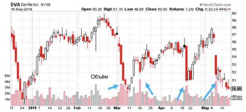 Приведенный выше годовой график не выглядит здоровым. На самом деле DVA выглядит так, как будто в настоящее время он рушится из-за очень большого «медвежьего флага». А если мы посмотрим еще внимательнее, то увидим большой объем в дни спада.
