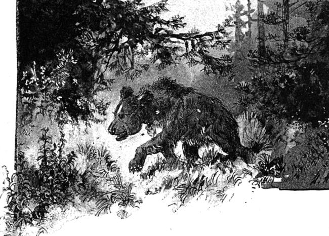 Дрогнули и стихли звери от нежданного громового удара, оцепенели и видят как их первый силач-богатырь, сам Михайло Иванович грохнулся и навзничь растянулся. Струею кровь бьет из повисшего уха!.. Когтистые лапищи бессильно вытянулись, когтями в окровавленный мох вцепились