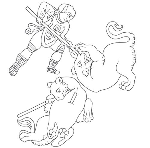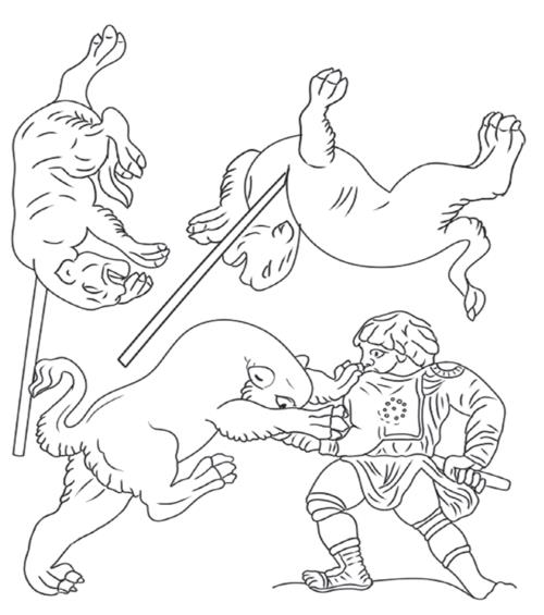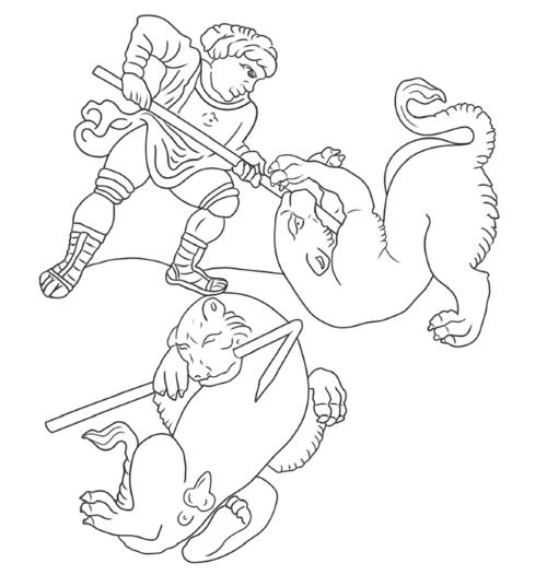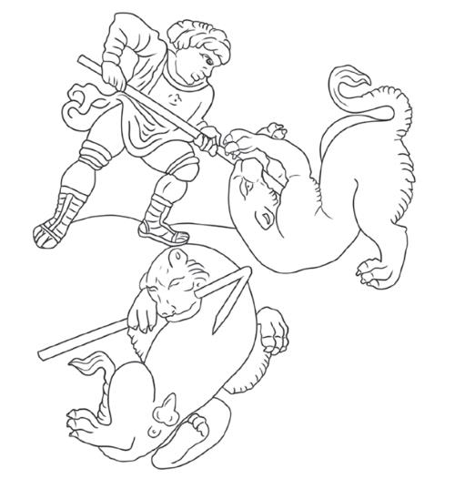 Рис. Ч12. То же. Русий (?) поражает зверя копьем в грудь