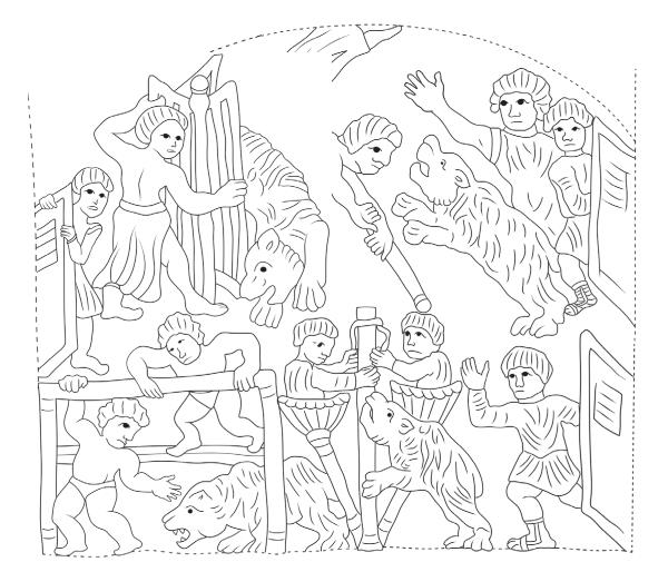 Благодаря этому комплексу визуальных источников можно наглядно проследить эволюцию зрелищных боев человека с животным в Византийской империи. Другие группы источников дают лишь эпизодические и отрывочные сведения о демонстрациях экзотических животных, а также об организации консульских игр[77] и экономически тяжелой для знатных людей «повинности зверями»[78].