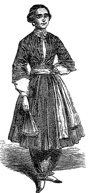 Реформированный костюм Амелии Блумер (ок. 1851): мешковатые шаровары и туника