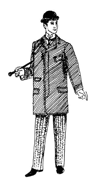 Мужской костюм конца XIX века. Актер В. Давыдов в цилиндре, сюртуке и жилете демонстрирует небрежную манеру держаться