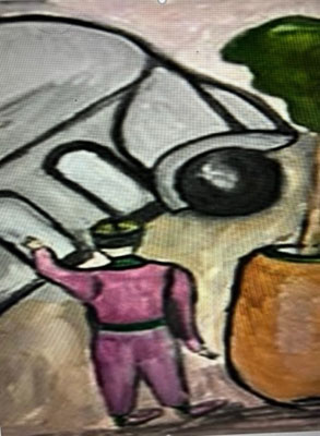 У нас мало времени, шифр я снял. Теперь надо найти домоправителя, чтобы он отдохнул, проговорил он. Они бросились к двери. Выйдя за дверь, они увидели робота домоправителя. Он стоял около автомобиля, на котором привезли команду. Видно, что автомобиль только, что вернулся из поездки, около него стояли какие-то колбы и ящики. Никого, кроме робота не было видно. Гуппи прошмыгнул сначала за вазу с цветами, потом за ящики и неслышными движениями подобрался к нужному объекту. Вытащив из кармана загогульку с проводом, он надвинул шапочку роботу на глаза, бесцеремонно открыл коробочку на его шее и прикрепил туда своё изобретение.