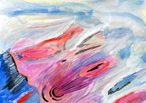 Рис 6. Красная точка увеличивалась, развевая за собой красно-синий шлейф
