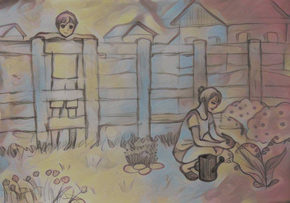 Зная что у меня осталось свободное время, я пожелал бабушке Зине хорошего дня и отправился гулять по центральной улице деревни. Проходя мимо дома Кристины, я остановился у забора и стал наблюдать как она поливает растущие цветы в саду.