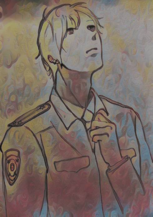 Артем в милицейской форме вышел на заднюю часть двора и подошел к маленькой могилке с фотографией своего пса.