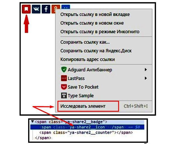 Чтобы изменить размер кнопок, нужно понять, какой css класс отвечает за это. Кликаем по любой иконке правой кнопкой и нажимаем Исследовать элемент.