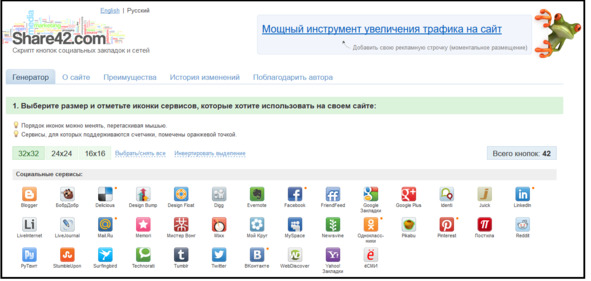 Сервис Share42. Установки кнопок социальных сетей: