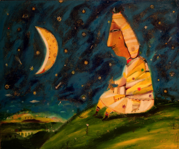 Тот, кто накрывает землю черепком, всегда хотел знать, что же творится на Земле ночью. Он смотрел в маленькие дырочки-звезды, но было совсем плохо видно. Тогда он провертел самую большую дырку, которую мы называем Луной, и стал подглядывать за происходящим.