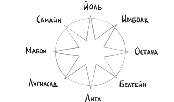 Теперь я предложу вам пофантазировать на тему не самых известных нам праздников. Колесо года, 8 праздников кельтских традиций, встречаются во многих народностях и основаны на движении солнца в течение года.