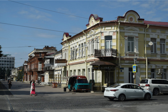 Площадь Свободы плавно перетекает в проспект Мира, заложенный в XIX веке и сменивший множество, соответствующих духу времени, названий, чествуя то первого начальника Владикавказского военного округа Петра Нестерова, чьими усилиями эта улица и возникла, то посетившего город императора Александра II, то главную движущую силу Октябрьской революции пролетариат, то великого вождя и учителя товарища Сталина. Однако, несмотря на вереницу громких имен и событий, первоначальный облик бульвара за последнее столетие существенно не изменился, поэтому сегодня это не только основная, частично пешеходная, туристическая артерия города, но и прекрасный музей под открытым небом, заставляющий радостно трепетать сердца и обычных туристов, и настоящих ценителей архитектуры XIX XX веков. Как и в случае прогулки по примыкающим к проспекту улочкам, где можно встретить и выпирающие башенками «караульни», и нависающие над проезжей частью массивы широких балконов, и кружевную паутину кованой ограды, и живописный узор каменной кладки фасадов.