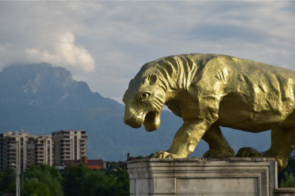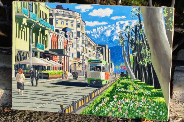 Для полноты ощущений к нашему этюду стоит добавить: тенистые аллеи Центрального парка культуры и отдыха имени Коста Хетагурова; Чугунный мост с грациозными барсами и «львиной» оградой; изящную Суннитскую (Мухтарова) мечеть с двумя минаретами 1908 года; выводящий к стихийному вернисажу мост Кладки с грифонами; неприметный Трамвайный, а ныне пешеходный мост; и, конечно, мост Кирова, выделяющийся парной идиллией царственных кошек льва и львицы, грозно взирающих на округу. А также, отдельным штрихом, удачно вписанные в уличное пространство города многочисленные фонтаны и жанровые скульптуры. Среди них: танцующий на чаше изобилия в окружении рыбоподобных косуль, извергающих из пасти воду, нартский богатырь Сослан на площади Ленина; невозмутимый «Городовой», охраняющий покой горожан на проспекте Мира; запряженная двумя быками повозка с дремлющим за спиной у кучера великим поэтом Пушкиным на улице Миллера; обдумывающие очередной ход «Нардисты» на улице Штыба; меряющиеся силой «Дед и внук» в парке Хетагурова.