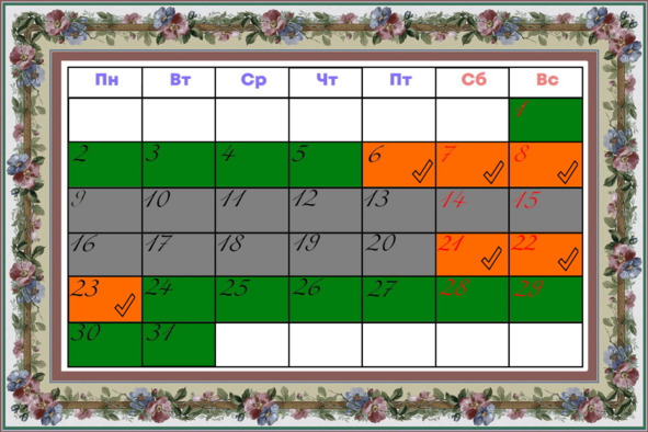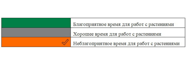 Для вашего удобства в начале каждого месяца есть календарь, в котором определённым цветом выделены благоприятные, хорошие и неблагоприятные дни работы с растениями, они рассчитаны исходя из фаз луны.