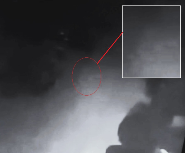 Бабушка замерла, не зная, что делать. В этот момент в дымке начало формироваться изображение, напоминающее лицо человека нос, глазные впадины. В этот момент кошка зашипела, вскочила на кресло и начала махать лапой по дымке, после чего последняя исчезла. В этот же день, спустя некоторое время, похожее дымка-облако было замечено проплывающим по коридору.