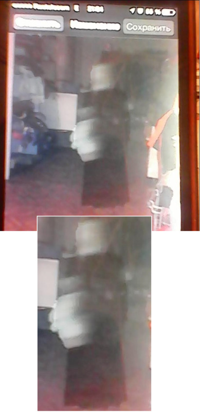 Мной была сделана обработка аналогичной записи от 24 июля 2016 года, с системы видеонаблюдения в помещении магазина Эльф, расположенного в цокольном этаже культурно-спортивного комплекса КСК ЗММК на проспекте Строителей Улан-Удэ, где так же были зафиксированы призрачные движения. Проверяя съемку по кадрам, на 22 секунде было замечено проявление лица.