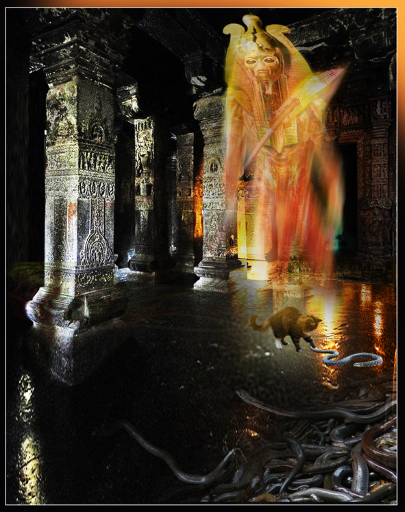 в колеблющемся мерцании пламени. И тишина, наполняющая страхом пустую залу, как и её чёрная тень на противоположной стене. Но тишина была нарушена непонятной вознёй и шипением. А совсем рядом она заметила кишащий змеями каменный пол. И они расползались с шипением