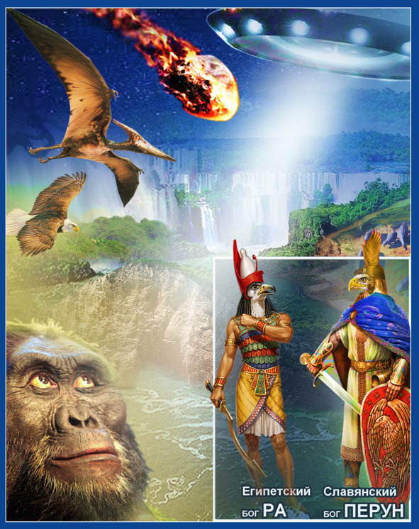 Так вот, провожая любознательным взглядом звездолёты пришельцев ваши первобытные пращуры пытались постичь тайны неба, а парящих металлических птиц олицетворяли с посланниками богов. Так в их головах рождались крылатые божества. Пройдут тысячелетия и в славянской мифологии появятся крылатые создания, это: птицы Алконост, Сирин, Гамаюн и легендарная птица Феникс. Верховное божество Перун, божество, одетое в перья, прототип орла.