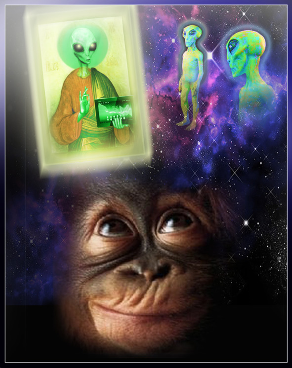 Вы называете себя гордым именем Человек Но на самом деле, в реальной жизни и по вашим поступкам видно, что вы так и остались обезьянами, которых выделили мы, инопланетные пришельцы, из общей массы животного мира. И о каком божественном начале может идти речь?