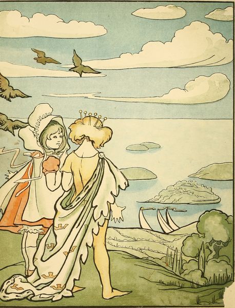 Король Мыслитель весь трепетал от волнения. Действительно ли что-то должно было наконец- то произойти? Однако у него не было времени подумать, прежде чем маленькая певица вышла из леса на открытое место. На ней был чистый белый передник, а на голове большая белая шляпка от солнца, а под шляпкой были два самых ярких карих глаза, которые когда-либо видел король. Он спустился с холма к ней, удивляясь, как что-то такое красивое и веселое могло попасть в его королевство; и в то же мгновение маленькая девочка увидела короля и побежала к нему вверх по склону, так что вскоре они уже стояли вместе, взявшись за руки, на полпути вниз по склону.