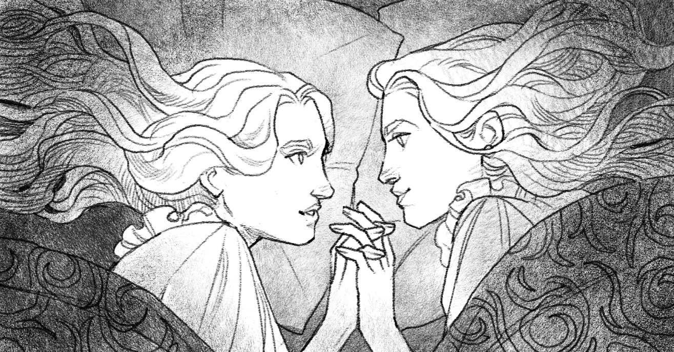 Она оказалась чуть ниже, чем можно было предположить, стройной почти как девушка, с тонкой талией, подчеркнутой поясом. Подол платья украшали вышитые листья и кружево. Леди Алексиана подошла к окну и застыла рядом, высматривая что-то снаружи, словно ждала гостя. Руки сложила за спиной, сцепив в замок.