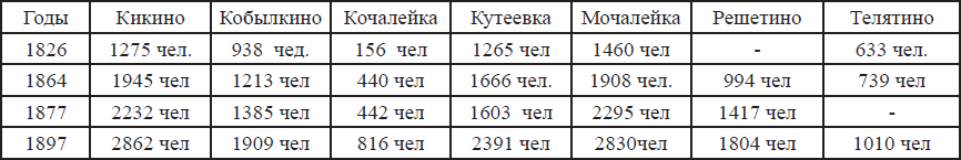 Довольно частым явлением были пожары, от которых погибала большая часть каменских сел. В с. Телятино Чембарского уезда в 1866 г. выгорели почти все дома; в 1868 г. в Кочалейке сгорела русская часть села. Тем не менее, татарские села развивались по возрастающей линии, о чем можно судить по таблице, приведенной в исследовательской работе И.Х. Гуркина "Социально-экономическое развитие татарских сёл западного региона Пензенского края в XIX нач. XX в."[25].