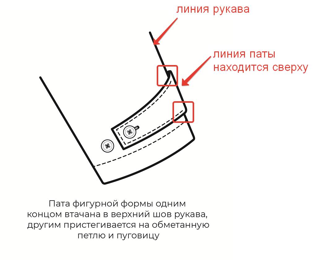 Изображение хлястиков и паты рукава