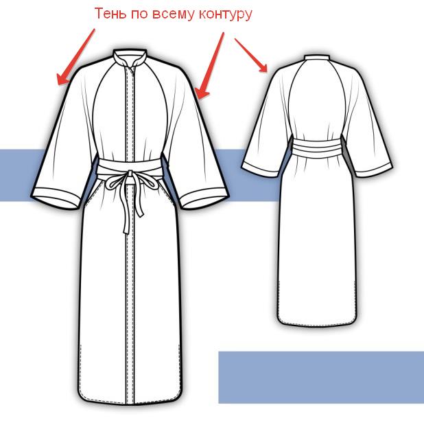 На рисунке 1.23 представлен технический рисунок платья с тенью по внешнему контуру.