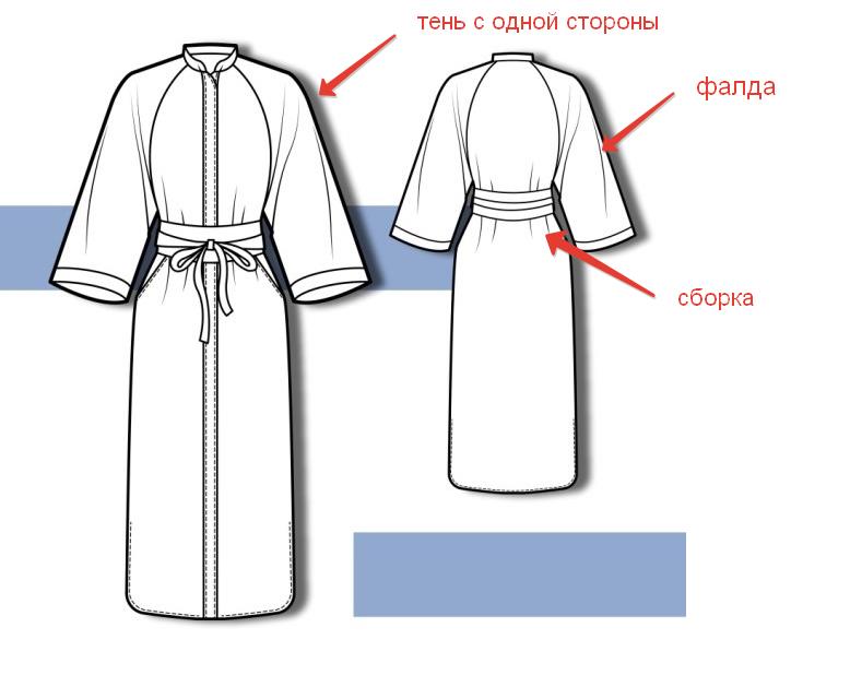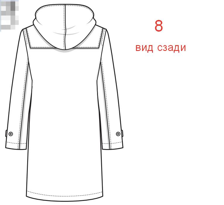 В техническом рисунке прорисовывают все конструктивно-декоративные элементы: карманы, клапаны, листочки, паты, воротники, пояса, хлястики и т.д.).