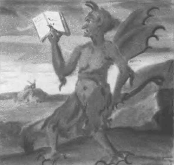 В третий раз явился он мне через полтора года в сем мерзостном обличии, с книгою в руке, где были собраны все тайны колдовства и черной магии, и дал мне все это. чтобы позабавить меня и развеять мою меланхолию. Из дневника Кристофа Хайцманна. «Свидетельство о чуде в Мариацелле»
