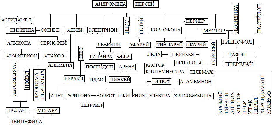 Жалобно дева стонала, клича Персея-супруга, но в этот раз не пришел он на помощь! Несмотря на жалобные стоны и горестный плач, Персей гордится звездной своей Андромедой за то, что на земле она родила ему дочь Горгофону и шестерых сыновей: Перса, Алкея, Сфенела, Элея, Местора и Электриона.