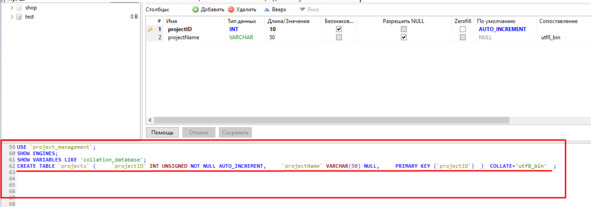 CREATETABLEINTUNSIGNEDNOTNULLAUTO_INCREMENTVARCHARNULLPRIMARYKEYCOLLATEЭтот же код можно увидеть теперь на вкладке «Код CREATE» (рис.1.20).