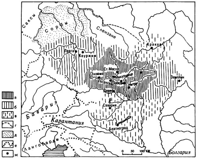 После распада франкской империи моравские славяне обрели независимость. Моравия на тот момент являлась союзом племен во главе с князем Моймиром (818846), принявшим христианство. Название Моравия впервые встречается в западных источниках в 822 году, во время приема моравских послов вместе с другими славянскими послами при дворе Людовика I Благочестивого, императора Франкского государства. Великая Моравия представляла собой раннефеодальное славянское государство, существовавшее в 822907 годах. В период расцвета Великая Моравия включала в себя земли, находящиеся на территории нескольких современных стран Венгрии, Словакии, Чехии, Польши, Украины и Германии. Столицей государства, как считают некоторые исследователи, был город Велеград.