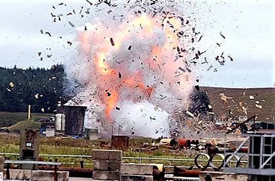 Посмотрите, Александр, внимательно. Если с помощью фотошопа убрать куски разлетающихся остатков чего-то и поместить это облако в небо, я бы сказал, что этот взрыв очень похож на грозовое облако. Свет, грохот, тепло или электромагнитное излучение. Давайте посмотрим, из каких веществ состоит порох. Вдруг они есть в атмосфере Земли, и тогда нобелевка, Александр из Москвы, от вас не уйдёт.